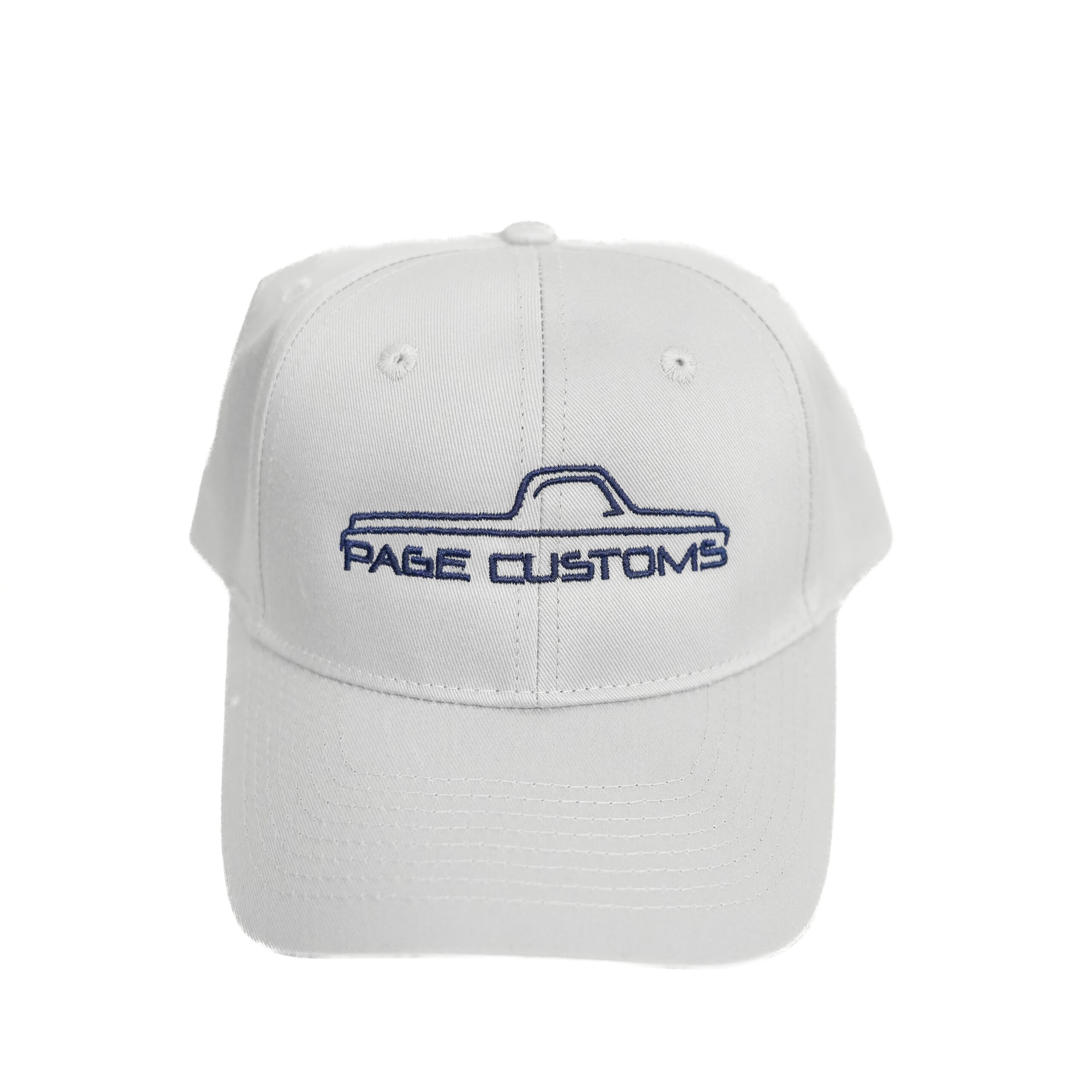 This hat features the Page Customs logo stitched onto the front and an adjustable back that makes them one size fits all.