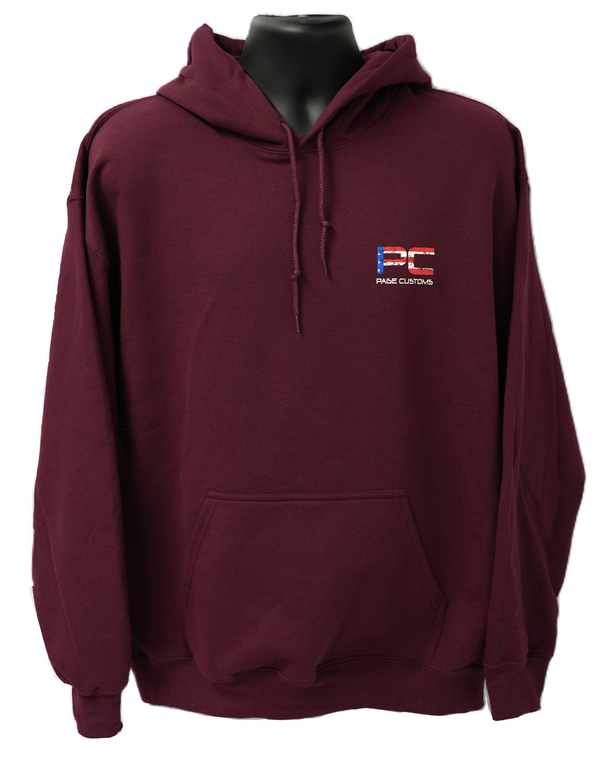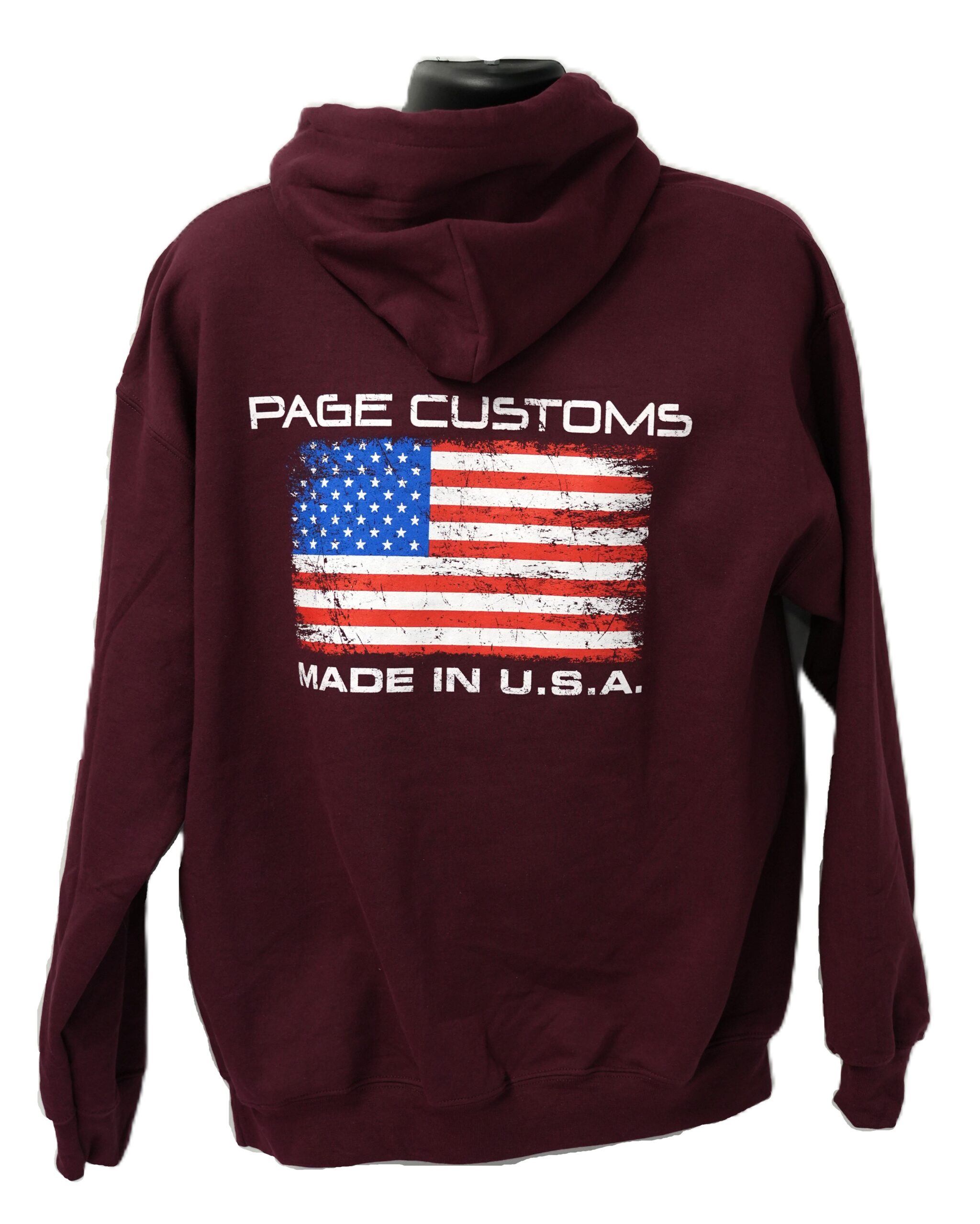 This hoodie from Gildan features the small Page Customs flag logo on the front along with the large USA flag Page Customs design on the back. *Sizes are limited due to low stock*